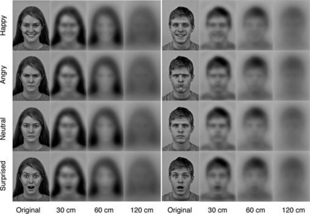 Zatim su ih pokazali bebama i njihova reakcija je pokazivala da li mogu da vide sliku ili ne. one su uglavnom nasumice reagovale na lica na udaljenosti većoj od 30 cm, ali na manjoj su mogle da prepoznaju emocije znatno preciznije.